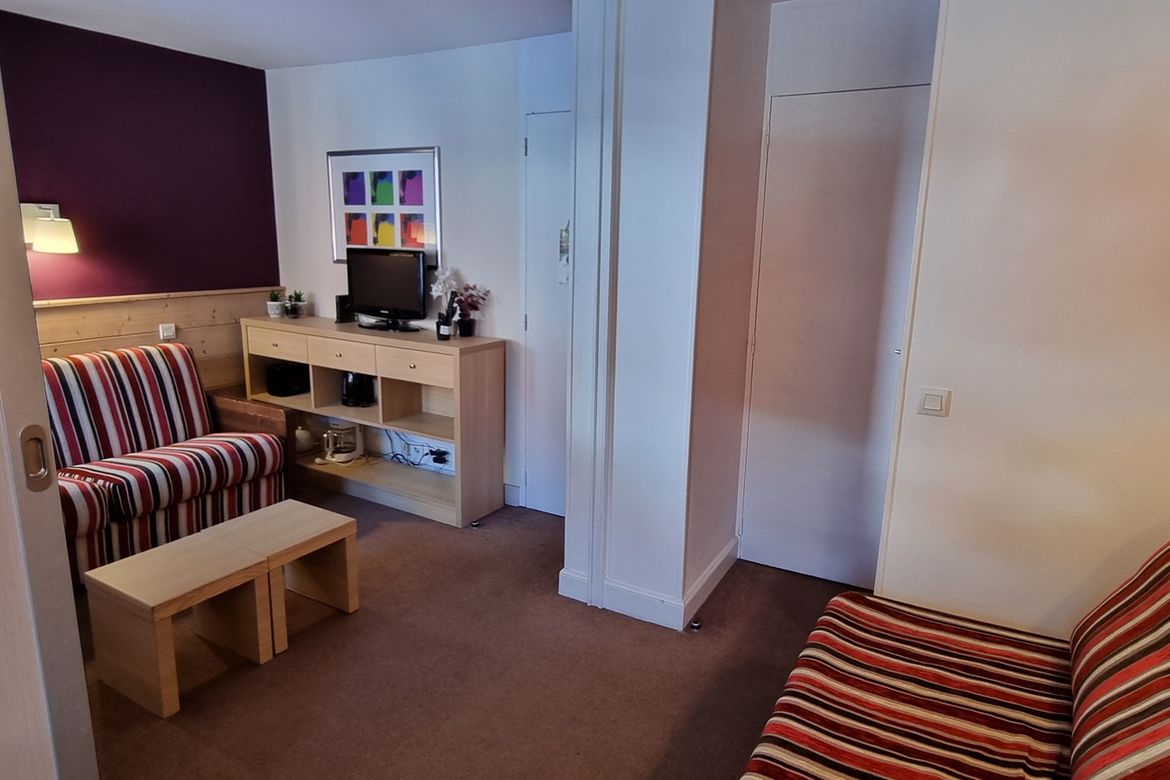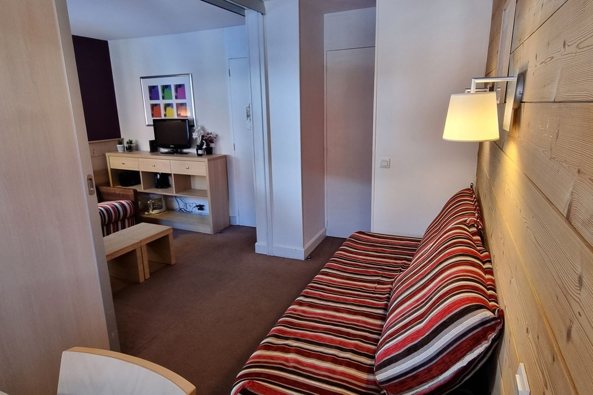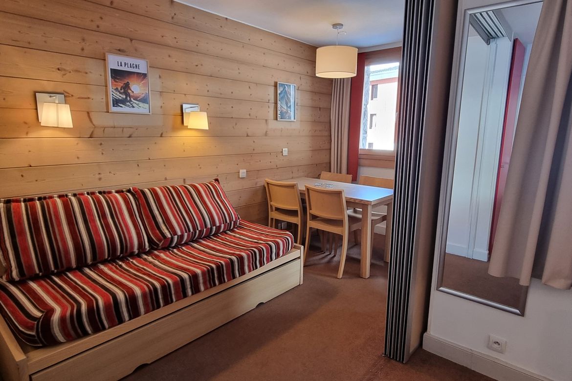Studio divisible, pour 4 personnes situé dans la résidence Soldanelles à Plagne 1800 . Appartement situé au premier étage avec une petite terrasse orienté Nord. Accès gratuit à la piscine extérieure chaufée et Sauna des résidences les Lauzes. Pour votre confort la cuisine est équipée de 4 plaques ...