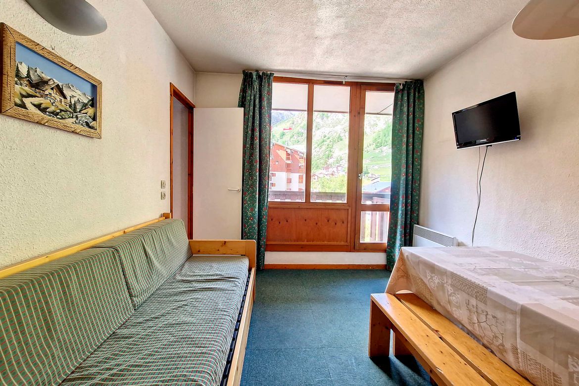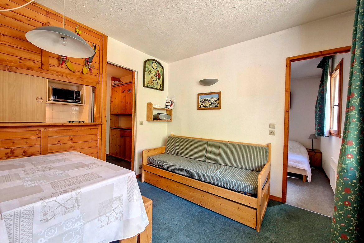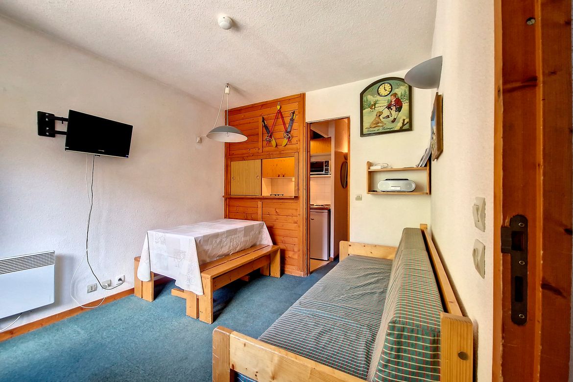 Appartement 2pièces de 24m² pouvant accueillir 2-4 personnes (idéal pour un couple) et situé au 1er étage avec ascenseur, dans la résidence Rond Point des Pistes I. Centre station et Pied des pistes. Exposition Sud avec un balcon Appartement non-fumeur Séjour avec un ensemble lit gigogne. Télévis...